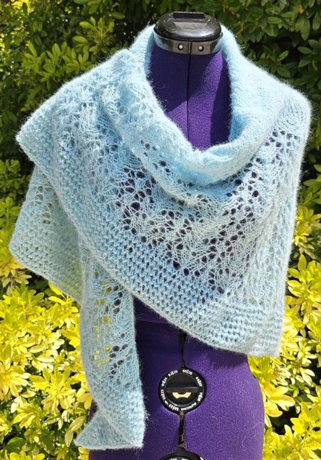 Châle dentelle, étole en laine, chèche tricoté - Création unique - Fait main