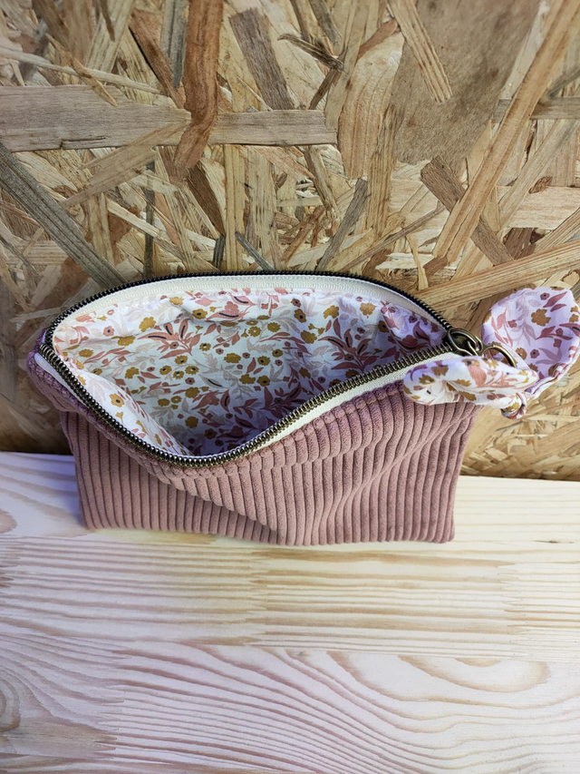 Petite pochette zippée en velours côtelé.